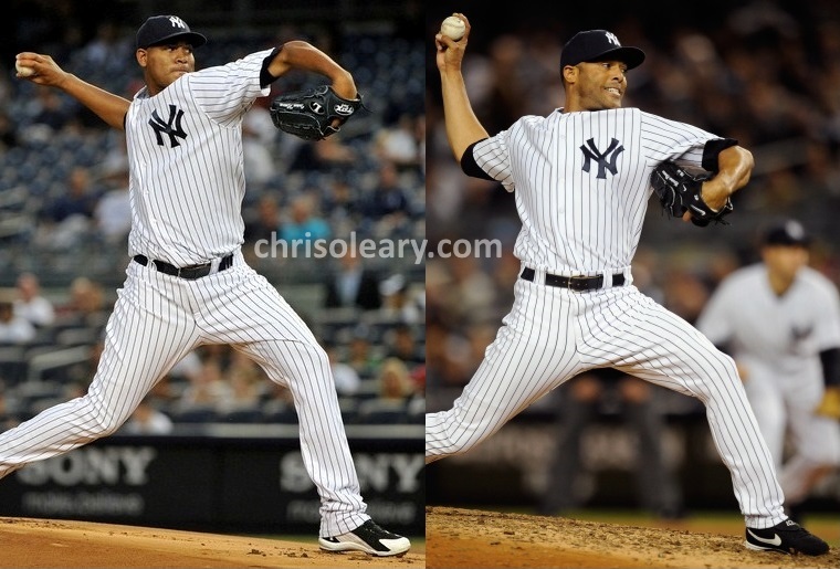 Contrast what Ivan Nova does with what you see in Mariano Rivera at the same moment in time; Ivan Nova is thumb-down and his pitching arm is FLAT while Mariano Rivera's thumb would be pointing at the catcher, if he were to extend it and his pitching arm is UP.